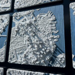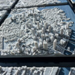 This sculpture is a 1:5000 scale 3D-printed map of Boston featuring every road, bike path, bridge, building, and highway in this area of the city.