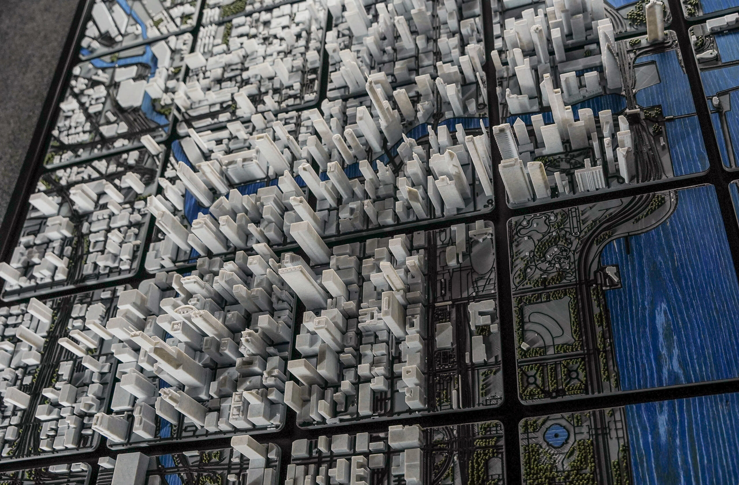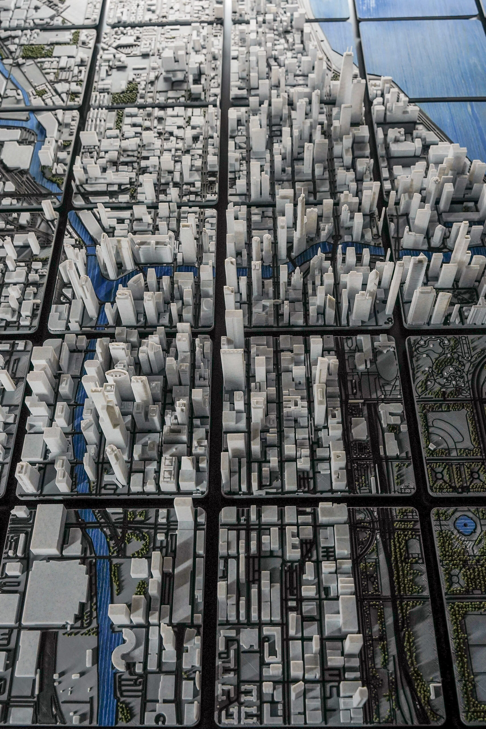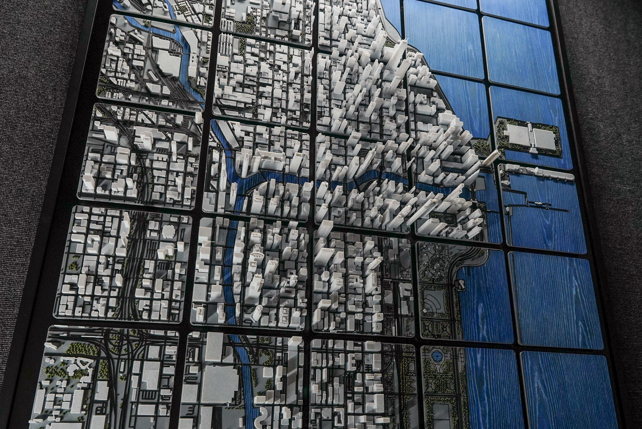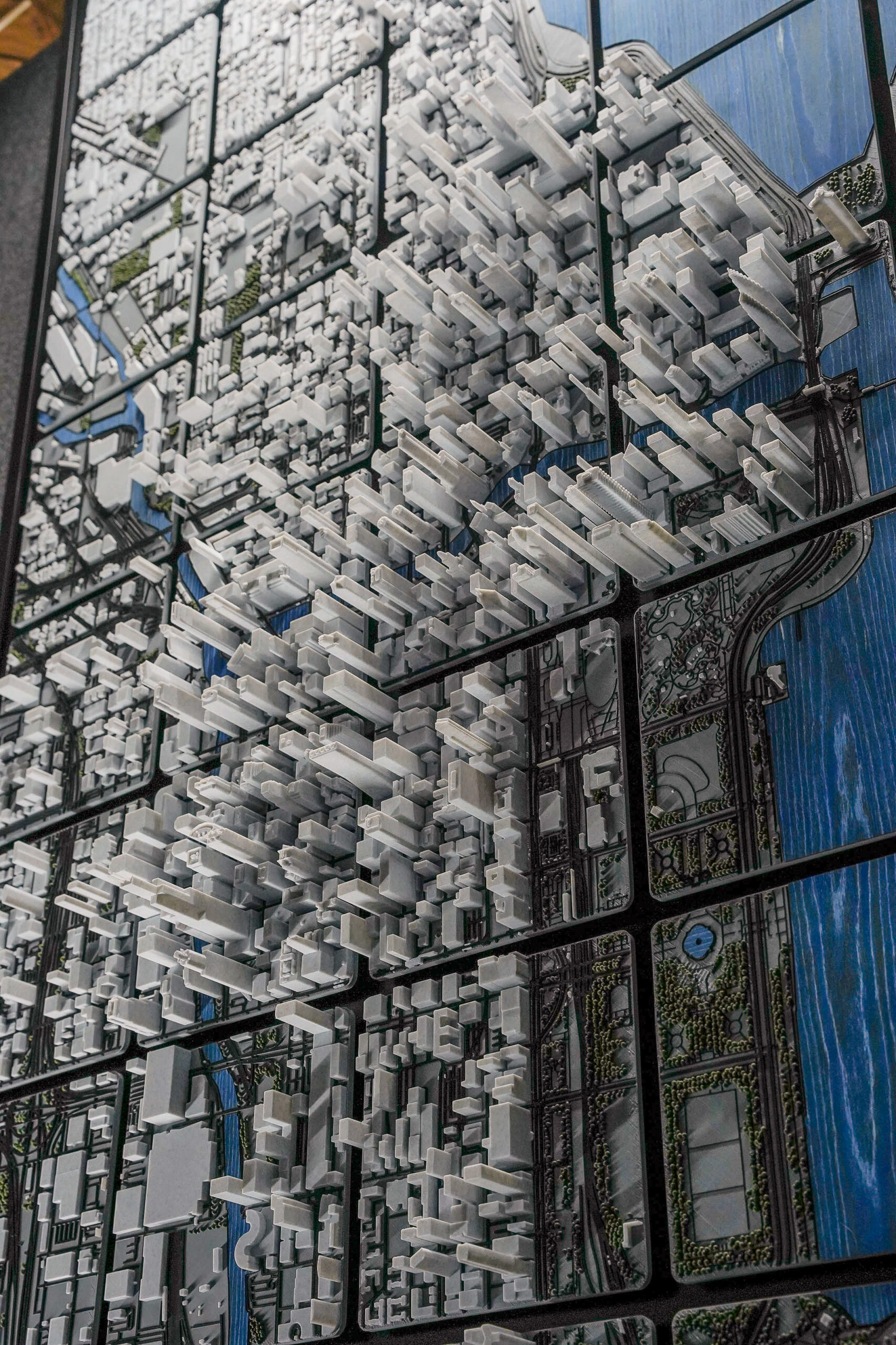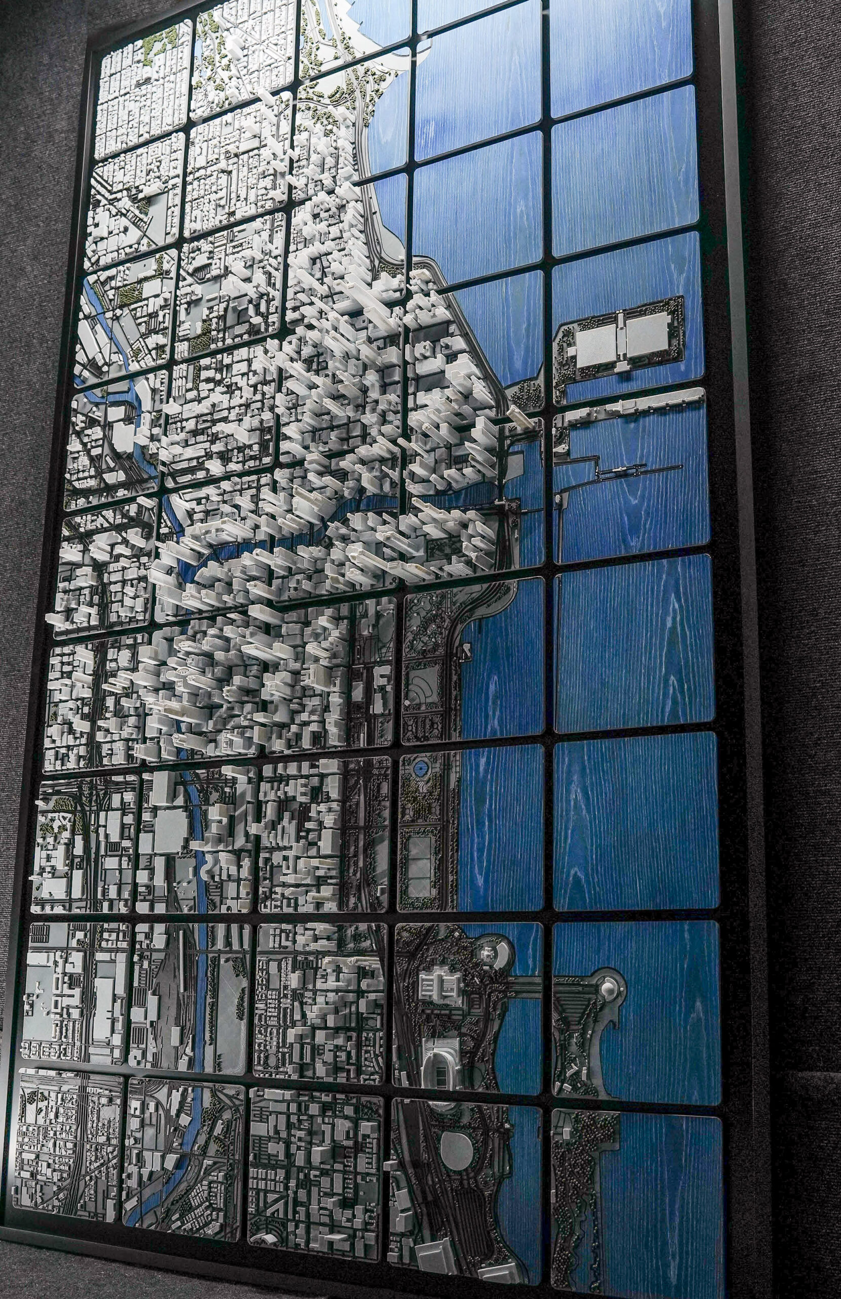 - 4′ x 6′ 3D map of Chicago at a 1:3000 scale