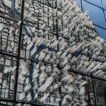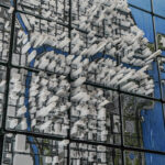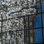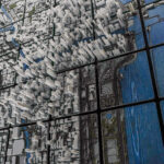 - Laser-cut and stained white oak veneer for Chicago River and Lake Michigan