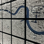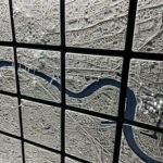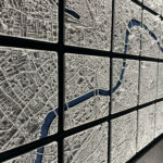 This sculpture is a 1:5000 scale 3D-printed map of Manhattan featuring every road, bike path, bridge, building, and highway in this area of the city.